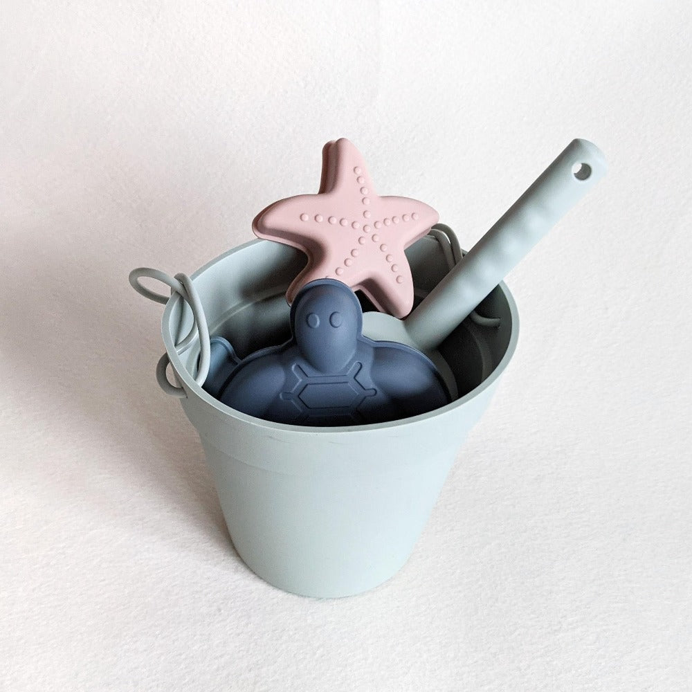 - 1 x Buttery Soft Silicone Beach Toy Set - select between Sky Blue or Sage Green