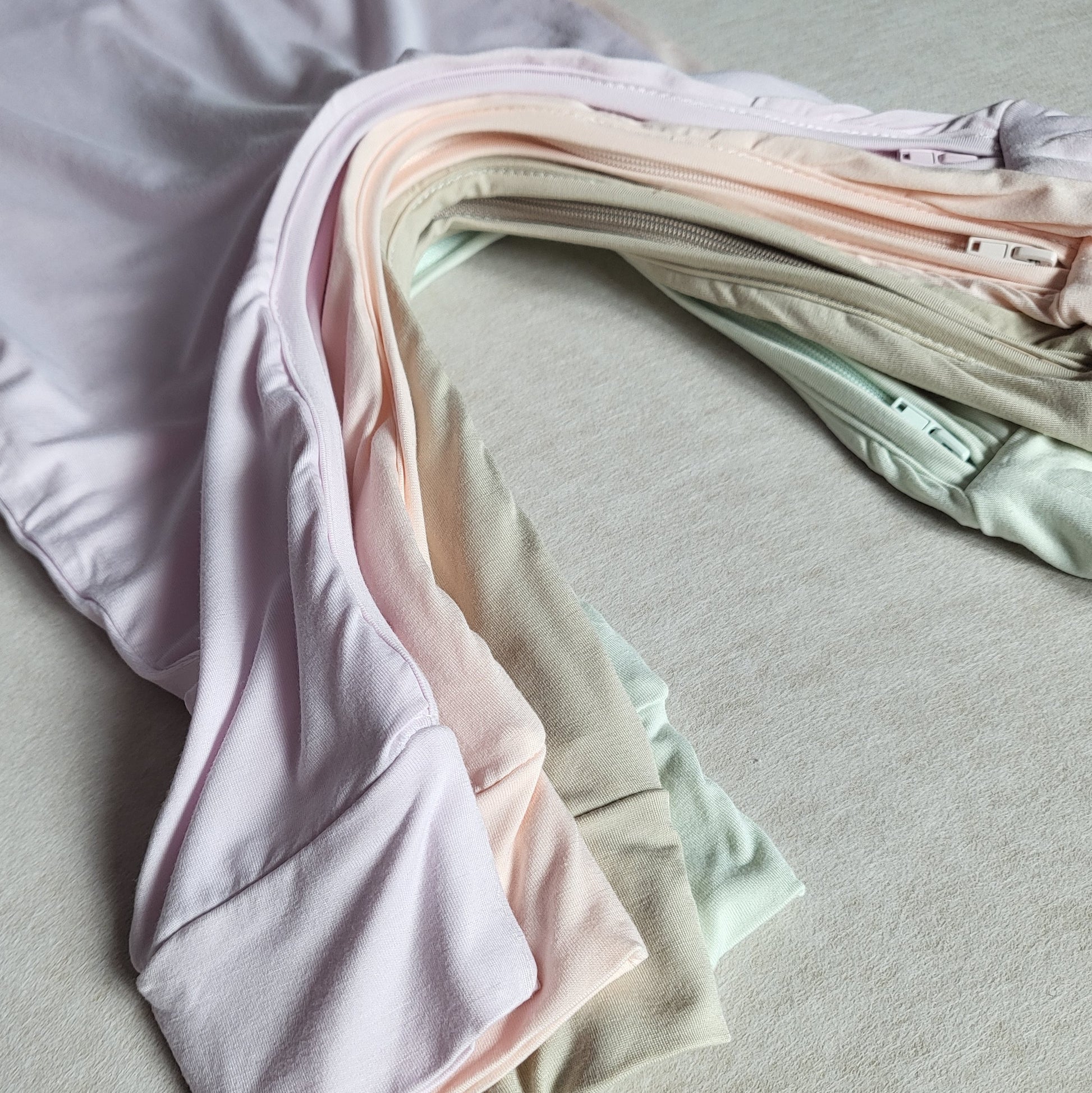 Our game changer romper is made from breathable and smooth bamboo fiber material. They are specially designed and equipped with a two way under zipper to allow easy diaper change for parents throughout the day/night. We have selected four neutral colors for our first collection. The stretchy fabric allows ample room for baby to grow into it with a snug or loose fit.